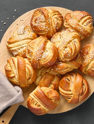 Raskes til knap dobbelt størrelse. Stryges herefter, dekoreres og bages. |