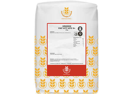 Grahamsmel Fint Vitt Vete er et fuldkornsprodukt, indeholdende alle kornets bestanddele af mel, klid og kim. Fremstillet af specialrensede og sorterede hvedekerner af hvid hvede N+. Anvendes til toast, boller, rundstykker og brød.